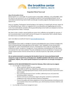 Outpatient Clinical Team Lead Job Posting